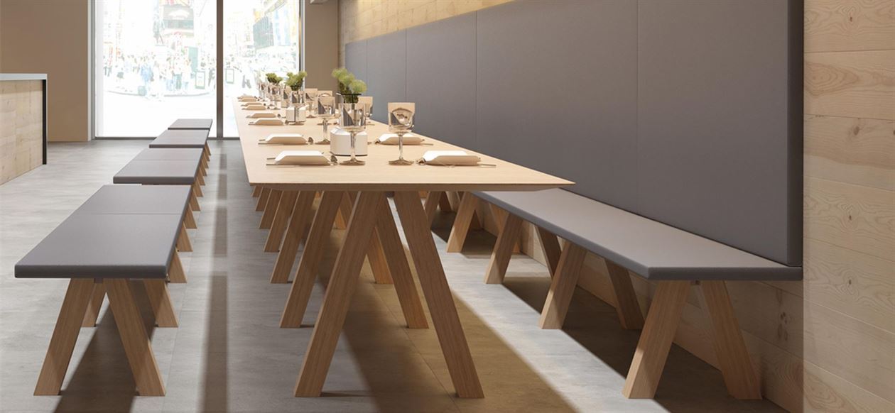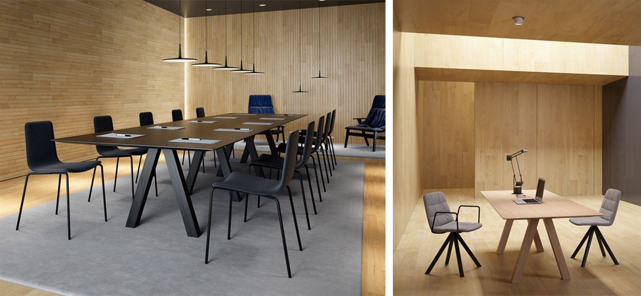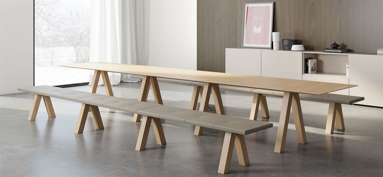 Designed by John Pawson the Trestle range is ideal both for the home – in its short version – and for waiting areas and hallways in smart public spaces. The table top is available in different sizes, along with a new width of 120 cm. Trestle also comes in a counter version to work at a 880mm height and is prefect for that quick shot of espresso.