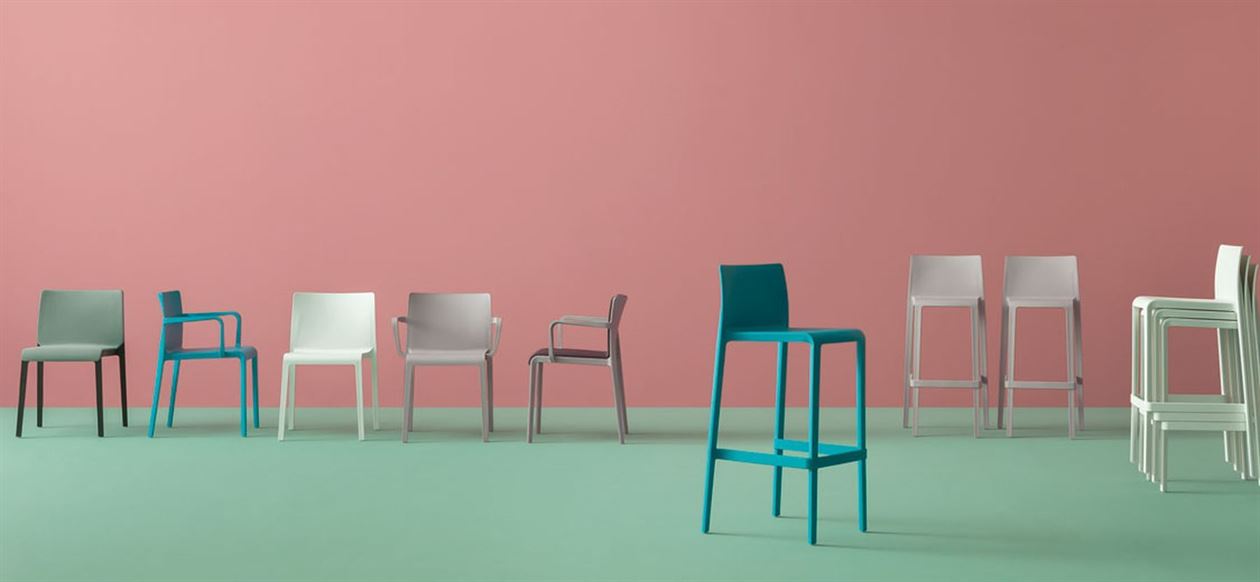 The competitively priced Volt barstool, with its pure volume and its well defined lines is the result of excellent selection of the best technologies and researches in plastic materials. The compact size and ergonomic shape ensure functionality and comfort. The Volt barstool is available in a range of colours and seat heights of height 765 & 660 mm.