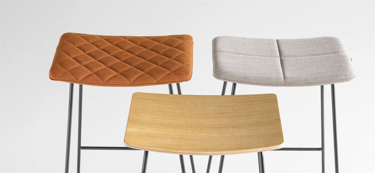 TAO is a collection of multipurpose stools with a lightweight, essential and neutral design. The collection is made up of stools with either a wooden or upholstered seat. The wooden seats are available in lacquered colours or in beech, oak and walnut veneers. The upholstered seats are manufactured in all the leathers and fabrics of the INCLASS swatch cards or fabric supplied or specified by the customer. The metallic structures are manufactured in two heights and can be finished in chrome or polyester paint in all colours from the INCLASS colour samples.