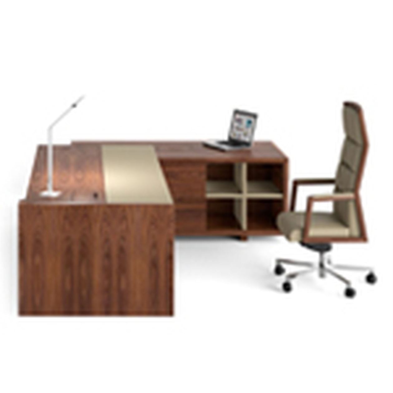 The Origami range was born of the simple process of a cut and bend of a genuine piece of paper. The final result is an executive system of tables and returns as well as storage units, with a fresh and clean design but always with an interesting point of differentiation. The desk offers a different perspective from each angle that you might look at it, a little bit like a sculpture. Designed by Paolo Favaretto with Nicola Zocca for GUIALMI, the Oragami range has recently won the GOOD DESIGN AWARD by the Chicago Athenaeum.