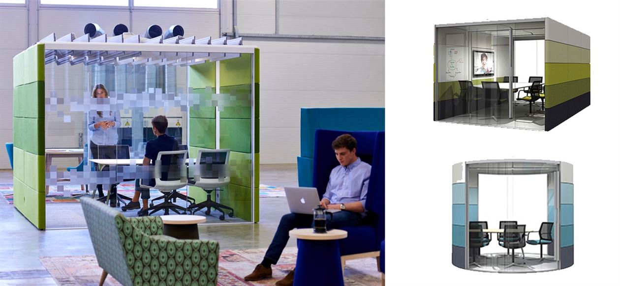 The Air-20 mini pod is a particular new addition specifically designed to provide high quality private space or phone booth for a single person who needs it for a few hours.