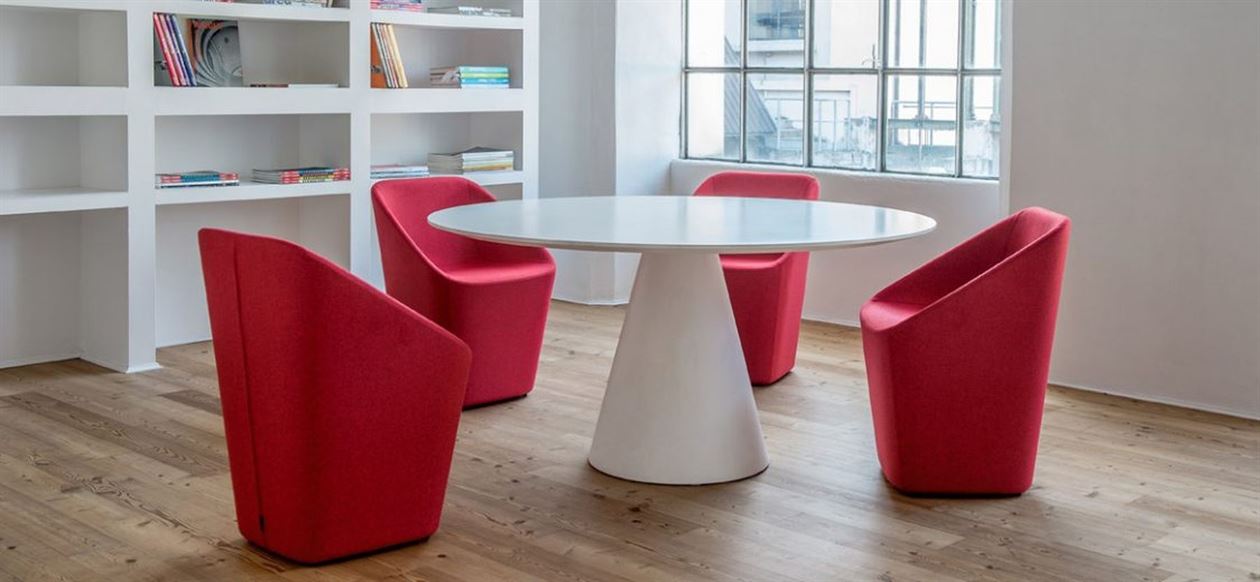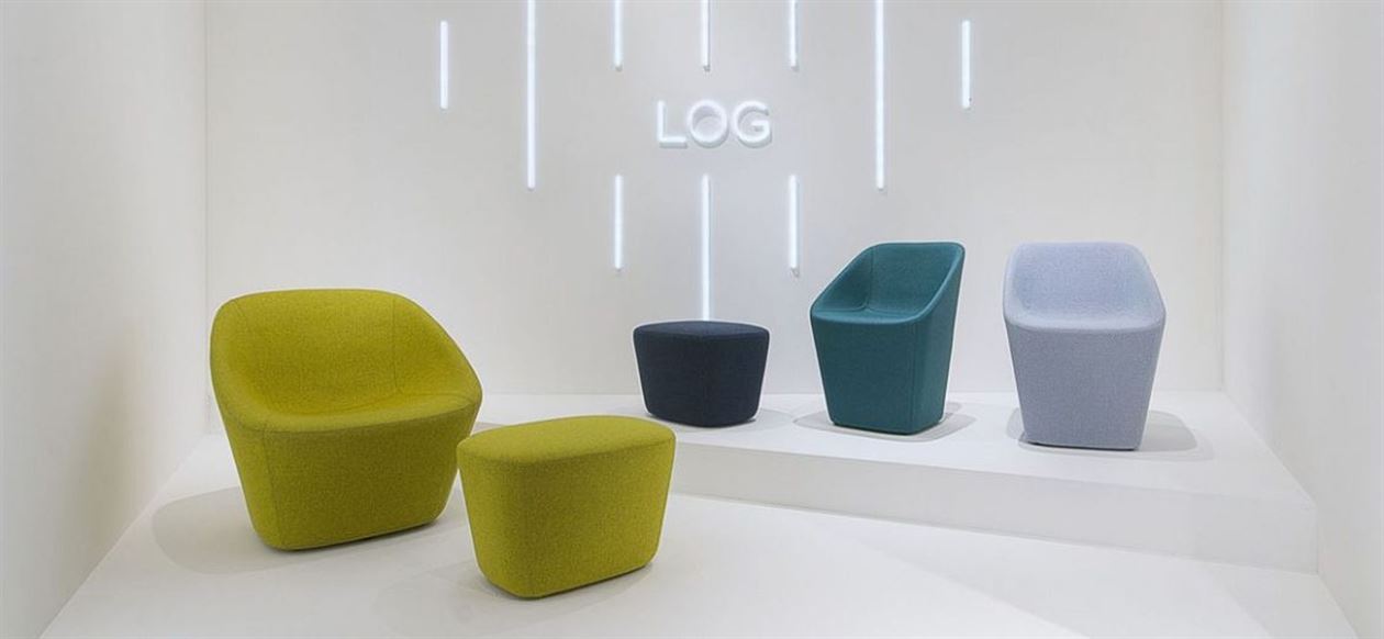 Log is a collection of completely upholstered seats which marries a sculptural aspect with surprising lightness. The lounge version reinterprets the volumes of the armchair, softening the shapes and giving them generous sizes. Stiff polymer frame covered by fire-retardant injected foam upholstered in fabric or simil leather.
