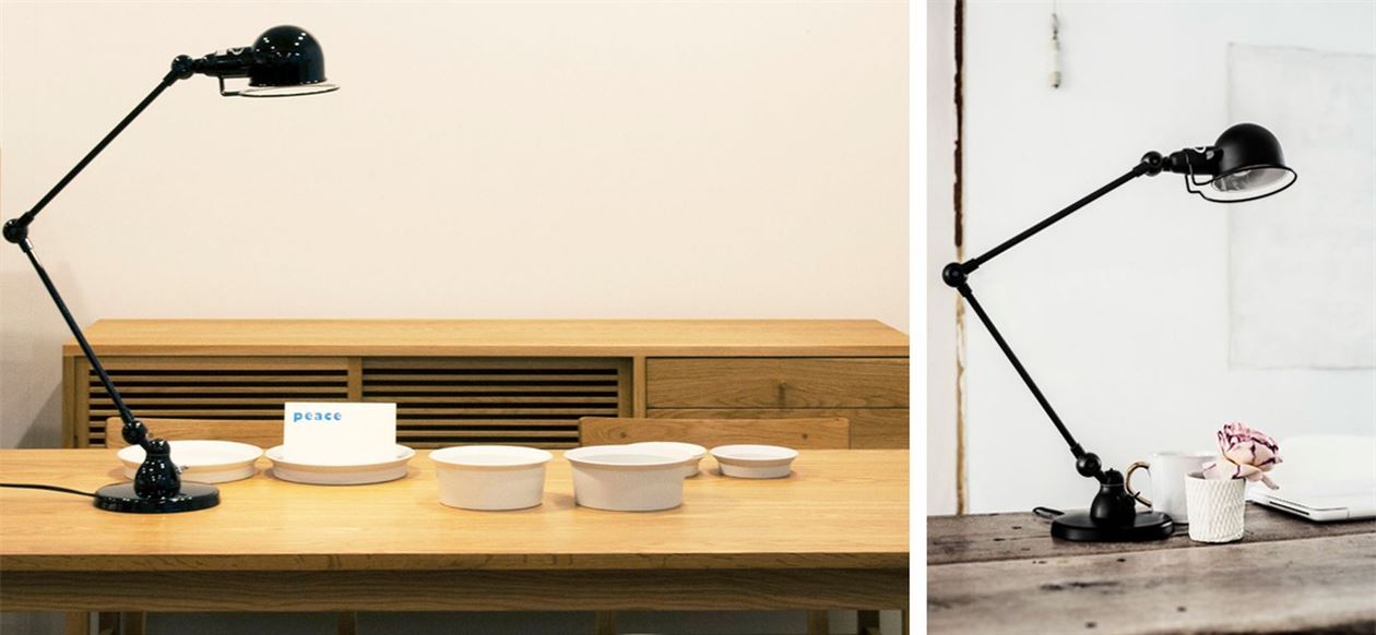 The Jielde Signal series is a range of classic handmade French industrial designed floor and table lamps made from turned steel. The Signal series was launched in the 2000’s for the residential market as a compliment to the larger Loft series created by Jean-Louis Domecq in the 1950’s. Designed with the ability to twist and turn at the joints without conflict to the wiring, these industrial lamps are not only beautiful but also highly practical On/Off switch located at base of lamp. The table lamps include the Sl333 with 2 arms & the SI400 with one arm