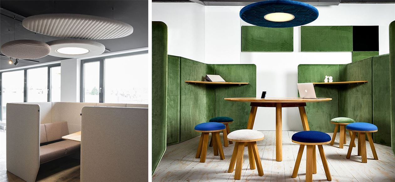 BuzziMoon offers the best of both worlds; highly functional general lighting embedded in a proven acoustic ceiling solution. One of the first acoustical lighting solutions that are equally performant on lighting as on acoustic level. The LED light module is designed specifically to answer the request of general lighting in office space. The Moon can be finished off in different fabrics and various 3D patterns. The LED module has an output of 2500 Lumen at a temperature of 3000K. The diffuser gives it a “full moon” lighting experience.