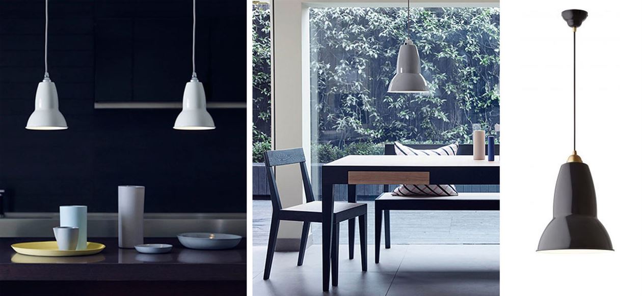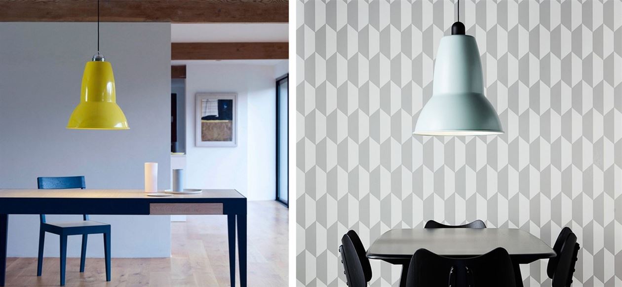 Combining the traditional Anglepoise® shape shade with attractive braided, coloured cable the Original 1227™ pendant can be used singly, matched with others, or in a series of multi-coloured hanging shades, to create a striking visual feature. Availble in 4 sizes – standard 14,5cm diamater, midi 23cm diamater, maxi 29cm diamaetr & Giant 44cm diamater in a range of colours including premium brass finish options.