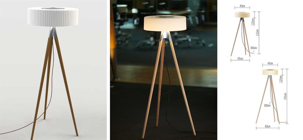 Maximilian is a LED floor lamp made from polished aluminum and oak. The mouth-blown glass shade – available in pleated, pearl white or cognac – gives the luminaire its unique character and creates a soft and pleasant light atmosphere. With the integrated dimmer, the light can be smoothly dimmed.