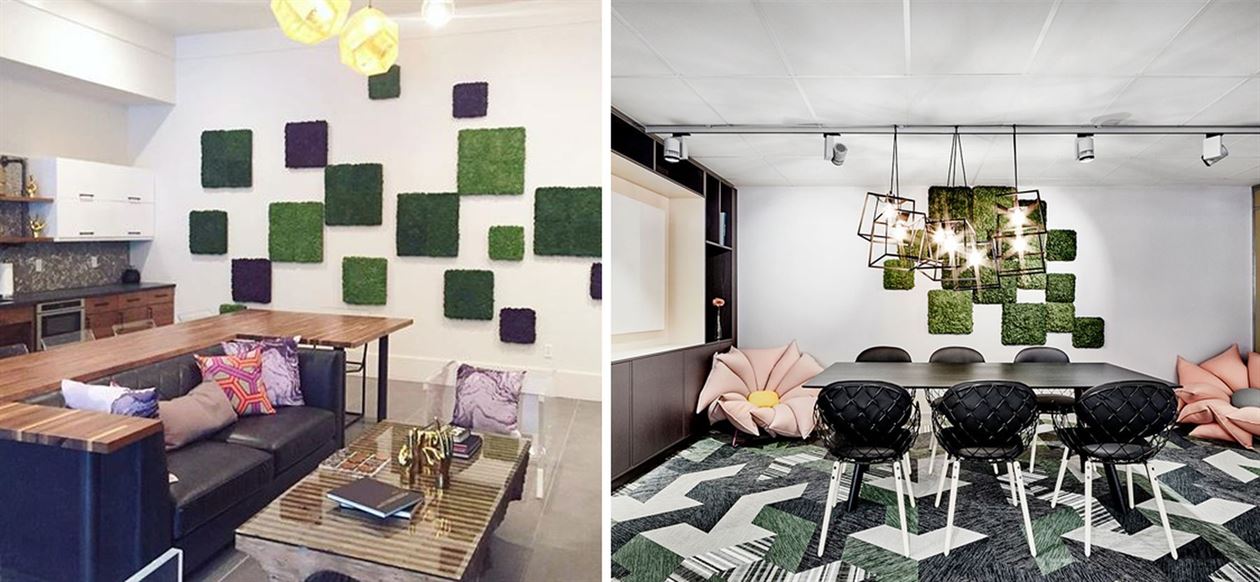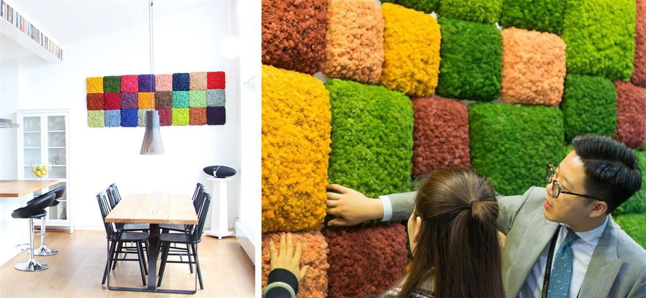 Nordgrona reindeer moss is a unique product that not only absorbs up to twice as much sound as the industry average for products of same size and thickness but also has a natural and clean aesthtic. The panels are made from naturally preserved real moss from the forests of Northern Sweden & Norway. The moss panels do not require any maintenance or cleaning and also act as an air purifier.The panels are available in a range of sizes and shapes.