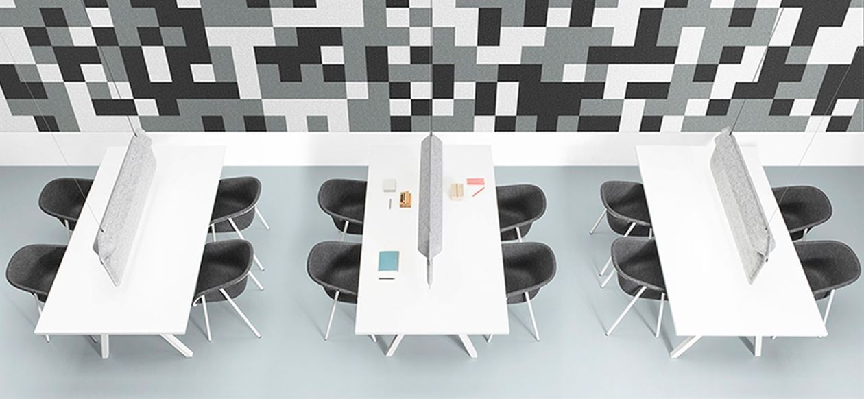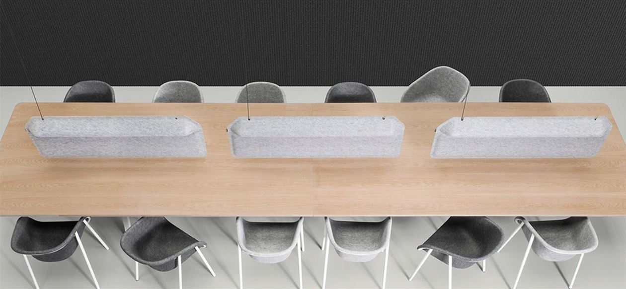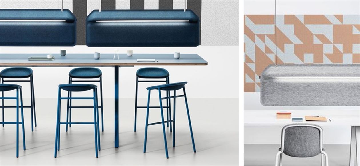 A Workplace Divider Lamp for reading tables, shared work spaces and open offices. The large shape has its own characteristic aesthetic as well as sound dampening properties to increase the sensation of privacy.