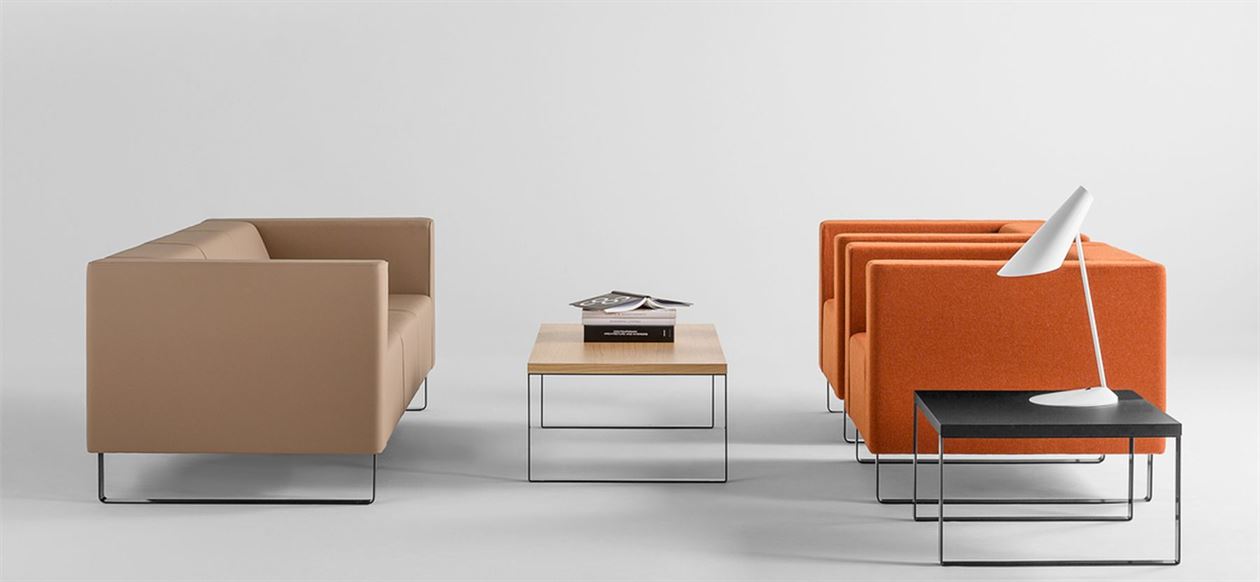 AVALON is a versatile collection of sofas, chairs and tables. The sofas are manufactured in one, two and three-seater versions and can be upholstered in any leather or fabric from our swatch cards or in fabrics supplied or specified by the customer. The side tables complement the collection. They are manufactured in several sizes with table tops varnished in beech, oak, walnut veneer or mdf lacquered in colours. The metallic feet are finished in chrome or paint.