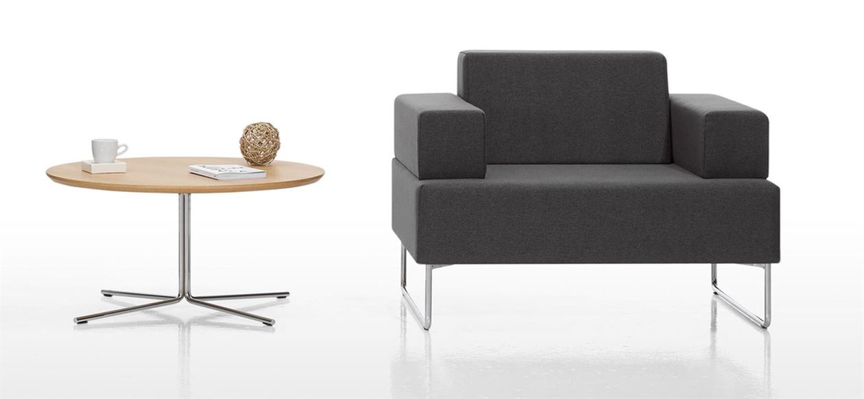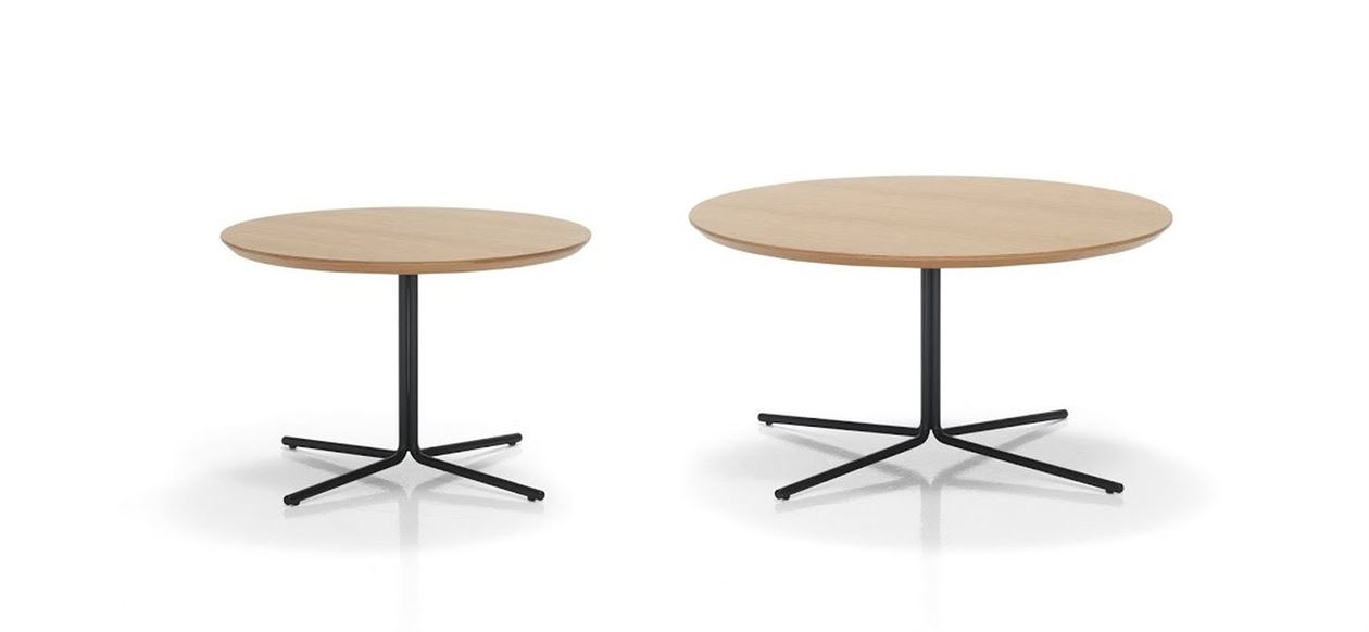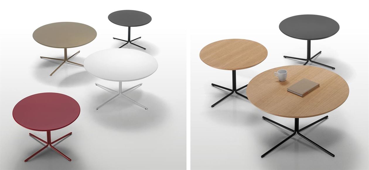 The MOON collection is made up of occasional tables with a four spoke central base and table tops in two sizes, 60cm and 80cm. The metallic bases are available in chrome or in any colours from the INCLASS colour samples. The table tops are available in a wide range of lacquered colours or in varnished natural oak veneer.
